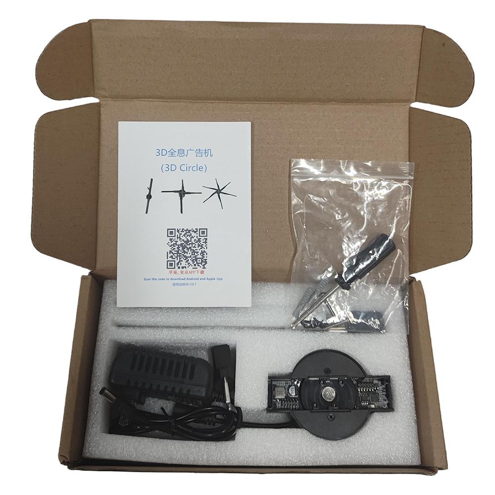 Item Type: 3D Hologram Fan Material: ABS, PC Plug Voltage: 100-240V Connection Mode: Wifi Wireless Transmission Number Of Fan Blade: 2 Blades Viewable Angle: 176 Degree Memory Card: Maximum Support 32G (Including 4G) Power: 15w Rotational Speed: 1250 Rpm Cell Phone App : 3D Circle Cell Phone Editing 3d Text: Support Adjustable Angle: Support Adjustable Brightness: Support Use Site: Indoor, Outdoor (Outdoor need Good Waterproof Measures) Use Life: Life 100,000 Hours
